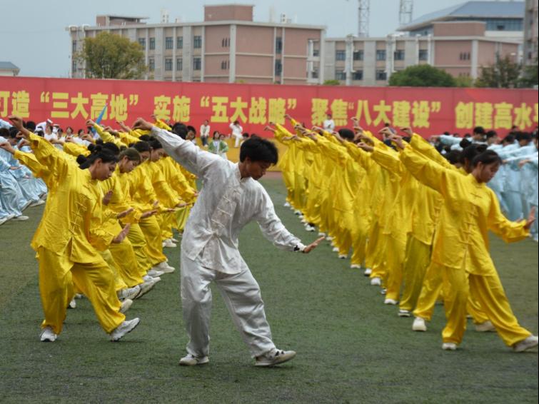 翩若惊鸿,婉若游龙,悠扬的太极音乐洋溢着传统之韵,药学院学子们精神抖擞,动作整齐,刚柔并济,将太极拳的舒展大方、急缓相间表现得淋漓尽致,以饱满的热情和娴熟的技艺,为大家展示了太极拳的魅力,赢得现场观众的阵阵掌声。运动会第一天,药学院太极队就获得了三名的好成绩,不负学子们的辛勤练习,真是可喜可贺!