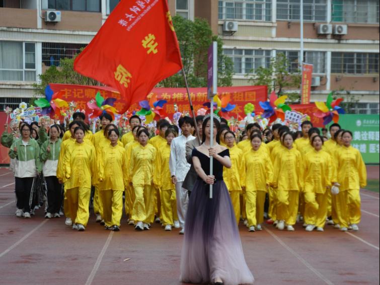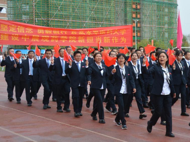 恰同学少年,风华正茂;逞飒爽英姿,一代天骄。药学院代表团方阵整齐划一,自信昂扬。方阵前方,院旗在风中高高飘扬,学院师生们伴着铿锵有力,响彻云霄的口号,带着必胜的信心走向主席台。