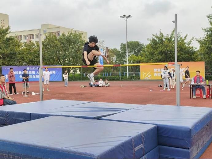 2023级中药学专业本科二班赵义彪勇夺学生普通组男子跳高第一名