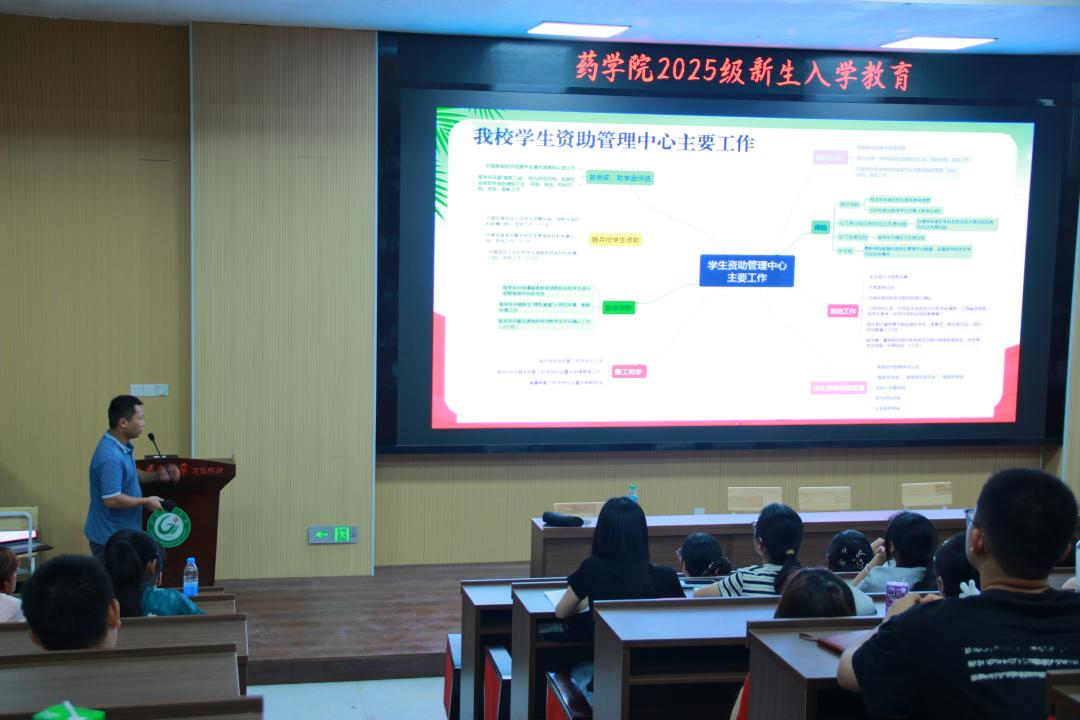 9月8日上午,药学院在龙南校区第三学术报告厅举行2025级新生资助政策专题宣讲会。本次讲座由学院辅导员王长水主讲,药学院2025级全体学生参加。