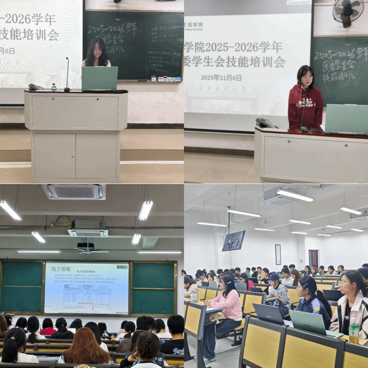 11月6日晚,药学院在龙南校区与蓉江校区同步举办2025年团委学生会工作技能培训会。本次培训创新采用“线上+线下”联动模式,全体团学成员参与学习。
