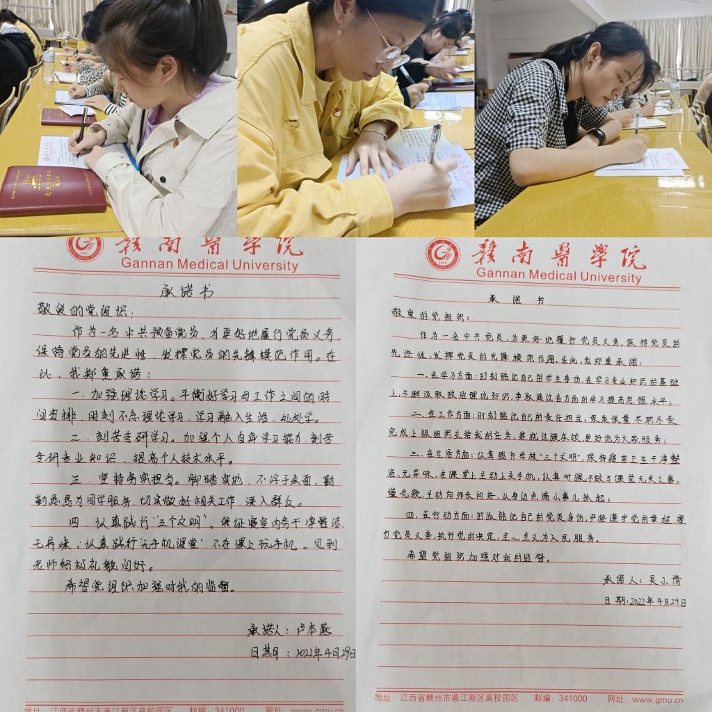在“五四”青年节到来之际,药学院学生党支部在全体党员中开展了“亮身份、作承诺、当先锋、树形象”活动。