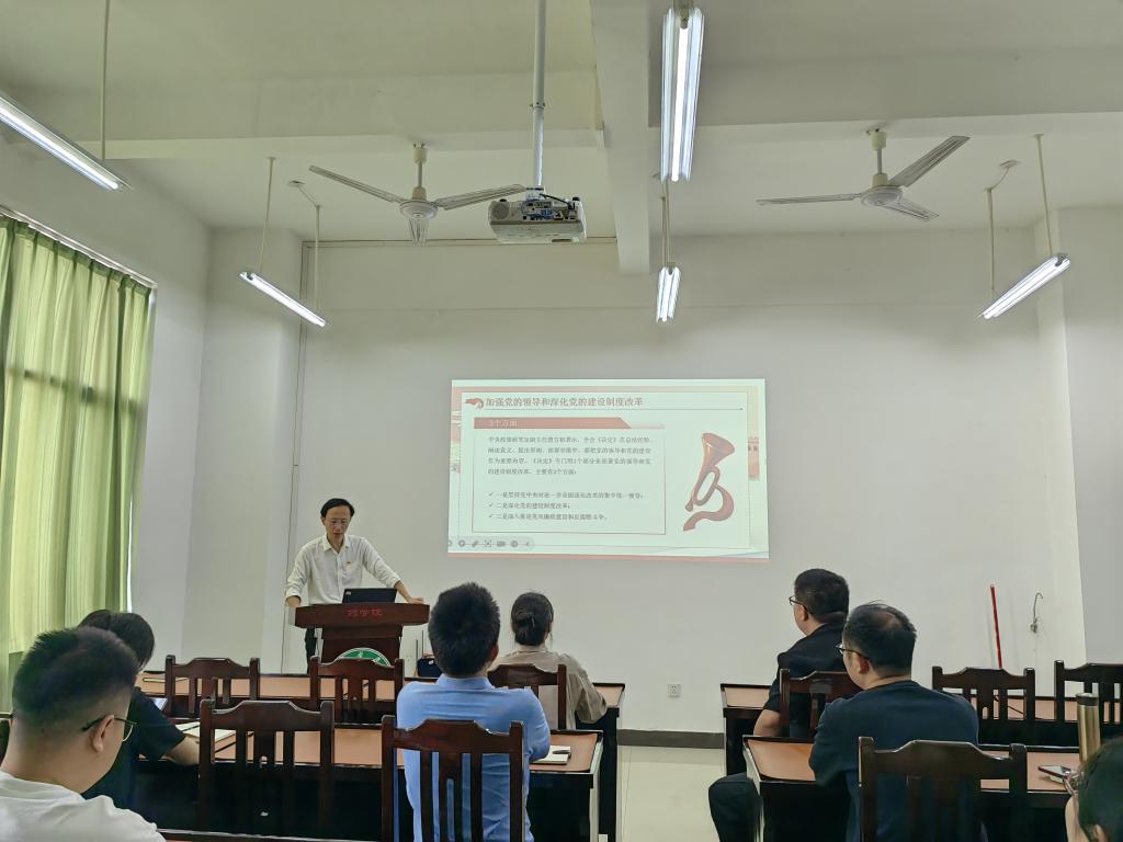 宣讲会上,丁冶春全面阐述了党的二十届三中全会的重大时代意义和深远历史影响,并从全会的重要成果、重大成就、经济、民生领域改革、教育、科技、人才、创新领域改革、民主、法治领域改革以及加强党的领导和深化党的建设制度改革等六个方面对党的二十届三中全会精神进行了全面解读。要求全体党员从政治维度、理论维度和实践维度深刻把握全会的重大意义、丰富内涵、核心要义和实践要求。