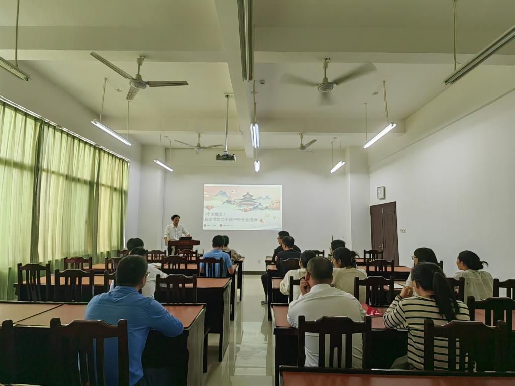 10月16日,药学院党委委员、副院长丁冶春以《6个关键点!解读党的二十届三中全会精神》为题,为教工第二党支部的全体党员职工宣讲党的二十届三中全会精神。
