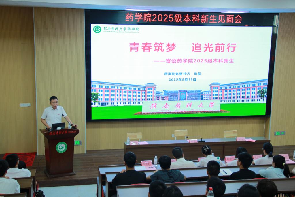 9月11日,药学院在龙南校区召开2025级新生见面会。该院领导班子、各专业负责人、教师代表、学工办辅导员及2025级全体新生参加。见面会由该院党委副书记罗丽萍主持。