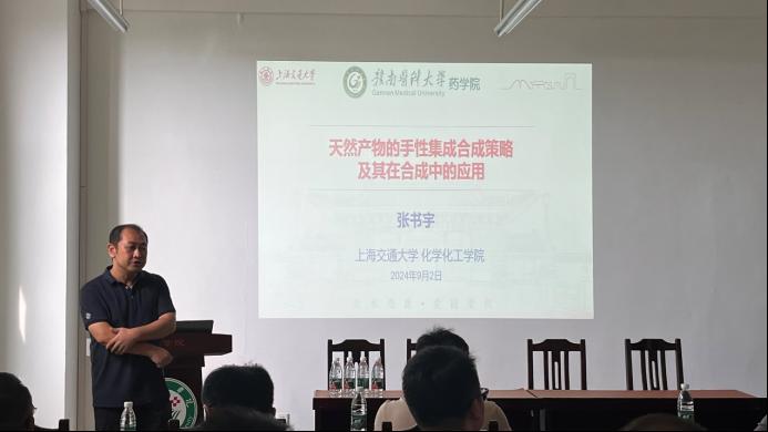 本次论坛邀请到上海交通大学化学化工学院副院长张书宇教授来院交流指导,张书宇教授从基础研究出发,紧扣天然产物合成研究领域的关键科学问题,结合自身科研工作,向与会师生作了一场精彩的学术报告,题目为“天然产物的手性集成合成策略及其在合成中的应用”。