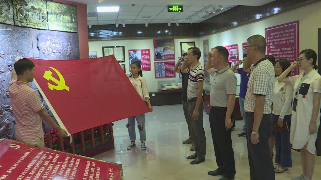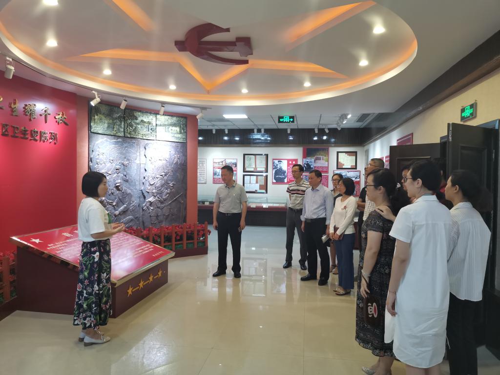 首先,全体党员干部面对中国共产党党旗,郑重举起右拳,重温入党誓词,接受党性再教育,参观红色卫生史博物馆。
