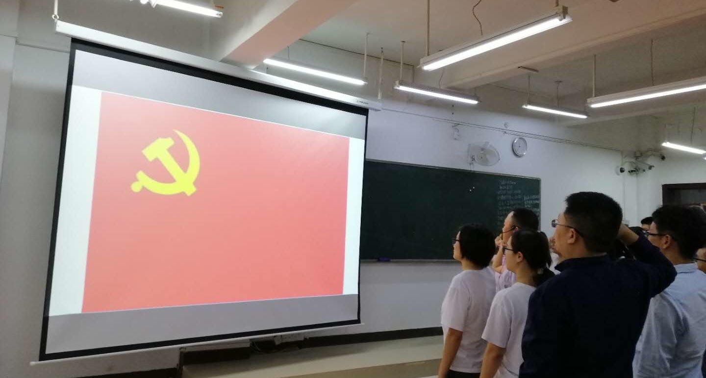 面对鲜红的党旗,全体党员在陈霖柏同志的带领下,右手举拳,神情肃穆,声音洪亮,重温了入党誓词。