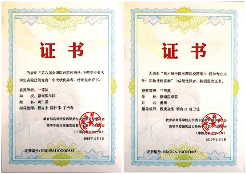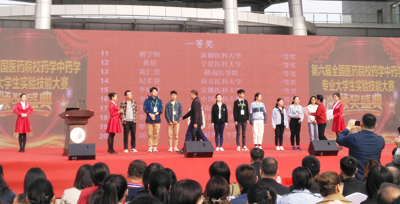 11月2日,教育部组织的第六届全国医药院校药学/中药学专业大学生实验技能竞赛在河南郑州落下帷幕,我校代表队药学院2016级药学专业学生黄仁堂荣获一等奖,虞涛荣获三等奖。