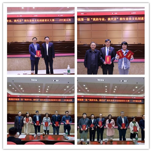 为继续推进学校五大工程建设,丰富内涵,提升成效,进一步激发全校师生的爱校、兴校情怀。11月19日晚,我校第一届“我的专业·我代言”招生宣传文化创意设计大赛——PPT展示类现场比赛在黄金校区图书馆学术报告厅举行,学校党委副书记、校长刘潜,党委委员、副校长张小康出席,各学院院长、分管领导、学工办及全体辅导员参加活动。