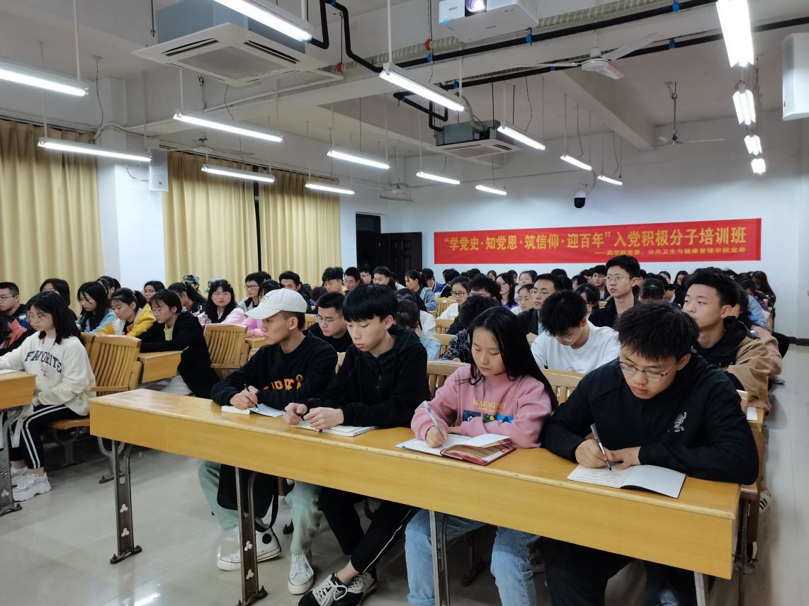 4月8日晚,药学院和公共卫生与健康管理学院在黄金校区召开了2021年上半年入党积极分子培训班开班仪式暨第一讲。药学院党委书记陈霖柏、公共卫生与健康管理学院党委书记范启兰、各学生党支部书记和全体参训学员参加。