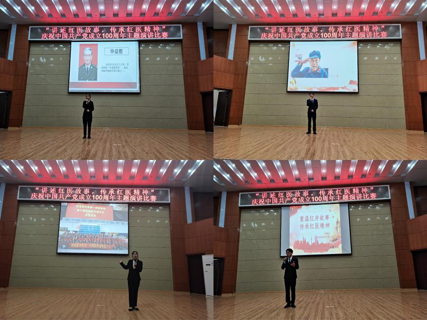 为庆祝中国共产党成立100周年,学习党的百年奋斗光辉历史,讲述红医故事,传承红医精神,推动党史学习教育扎实深入开展。4月21日晚,药学院在综合办公楼学术报告厅举办了以“讲述红医故事,传承红医精神”为主题的演讲比赛,药学院党委书记陈霖柏、副院长赖日勇、丁冶春及师生代表共300余人参加。