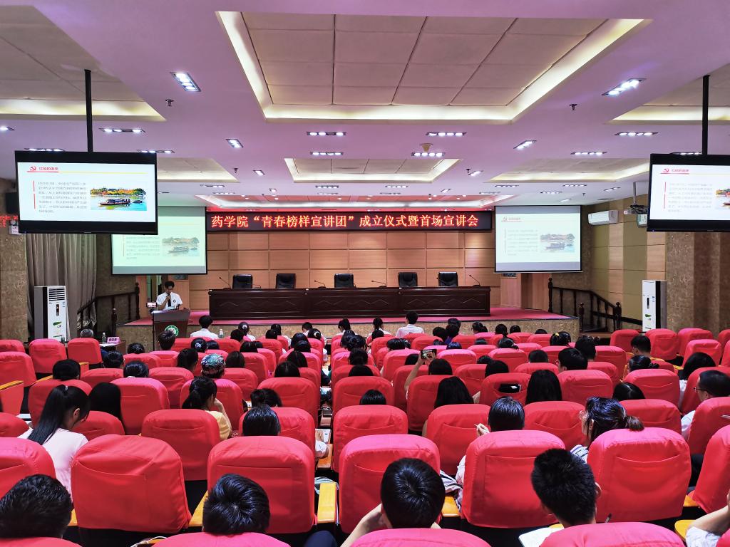 6月7日,药学院在黄金校区图书馆报告厅举行“青年榜样宣讲团”成立仪式暨首场宣讲会,该院副院长赖日勇及学生党员、团员青年代表120余人参加。
