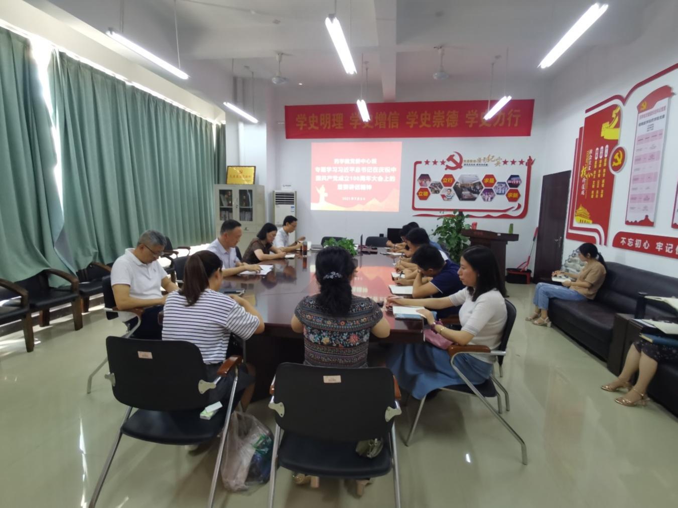 7月5日上午,药学院党委中心组专题学习习近平总书记在庆祝中国共产党成立100周年大会上的重要讲话精神会议,药学院领导班子成员、党史学习教育领导小组成员、各支部书记参加。