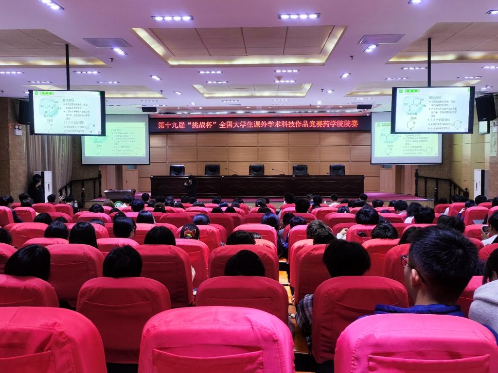 3月14日晚,药学院在黄金校区举办第十九届“挑战杯”全国大学生课外学术科技作品竞赛药学院院赛。田原僮、温丽娟、彭孝鹏、黄九忠、戴伟、李林福、胡海波、吴高荣、钟祥健、袁东波等老师担任评委,各参赛团队及各年级学生代表共计180余人参加。