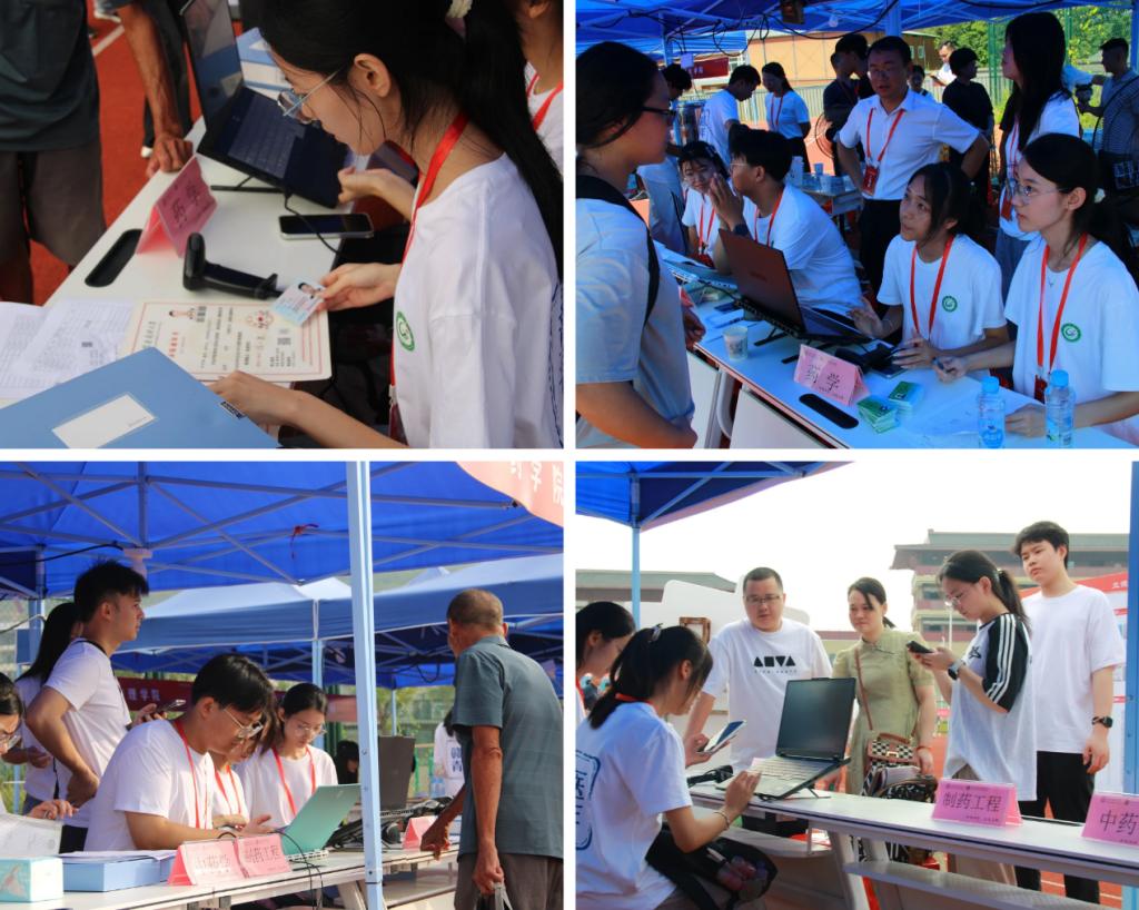 9月4日至5日,2025级新生们在父母家人的陪伴下,来到满是温暖与活力的校园。志愿者们穿梭其间,主动上前为携带行李的新生提供引导服务,协助新生高效完成信息登记、材料提交、校园卡领取等报到流程,确保每一位新生都能顺利完成入学手续。完成报到后,志愿者们为新生供应白刺香薷养生茶饮,帮助新生解渴消暑、缓解旅途疲惫,还贴心发放了精心制作的香囊。