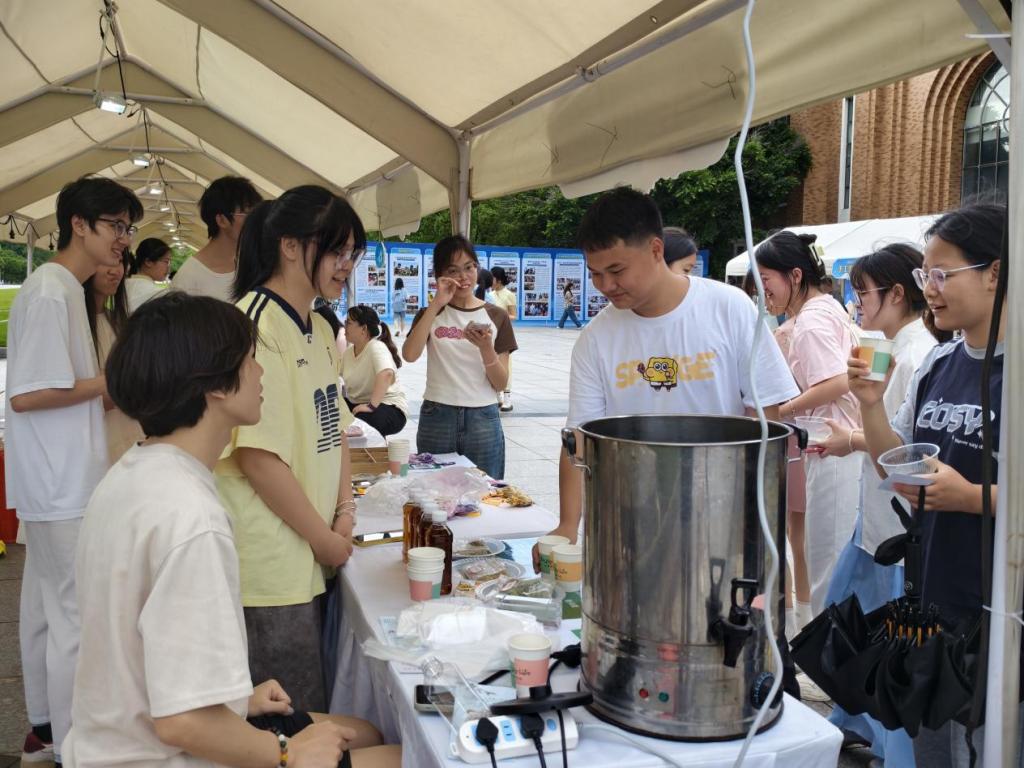 在热闹非凡的文明集市现场,药学院带来的自制香囊与自研的“白刺香薷饮”特色饮品大放异彩,吸引了众多师生的目光,成为活动现场当之无愧的热门产品。这些产品不仅充分展现出中医药文化的独特魅力,更彰显了药学院学生优秀的创新实践能力,收获了现场师生的一致好评。
