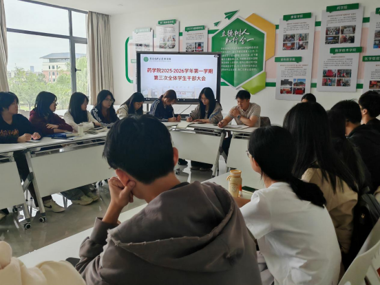 10月20日,药学院召开2025-2026学年第一学期第三次全体学生干部大会。学院团委副书记袁东波与全体学生干部共同参会,明确工作方向、凝聚奋进力量。